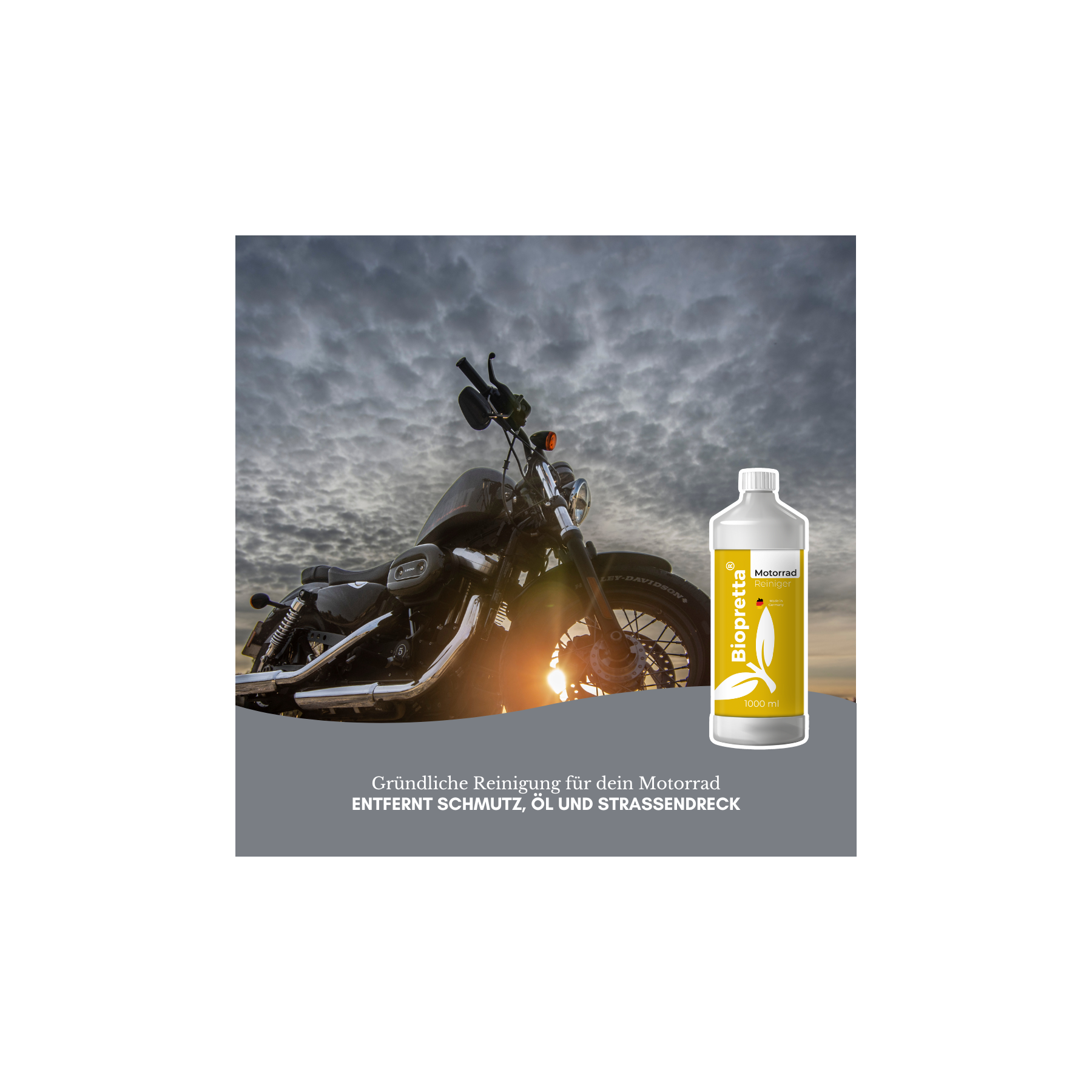 Der Biopretta Motorradreiniger löst mühelos hartnäckige Verschmutzungen wie Öl, Fett und Straßendreck. Dank des integrierten Korrosionsschutzes werden empfindliche Metallteile bereits während der Reinigung konserviert und vor Rostbildung geschützt.